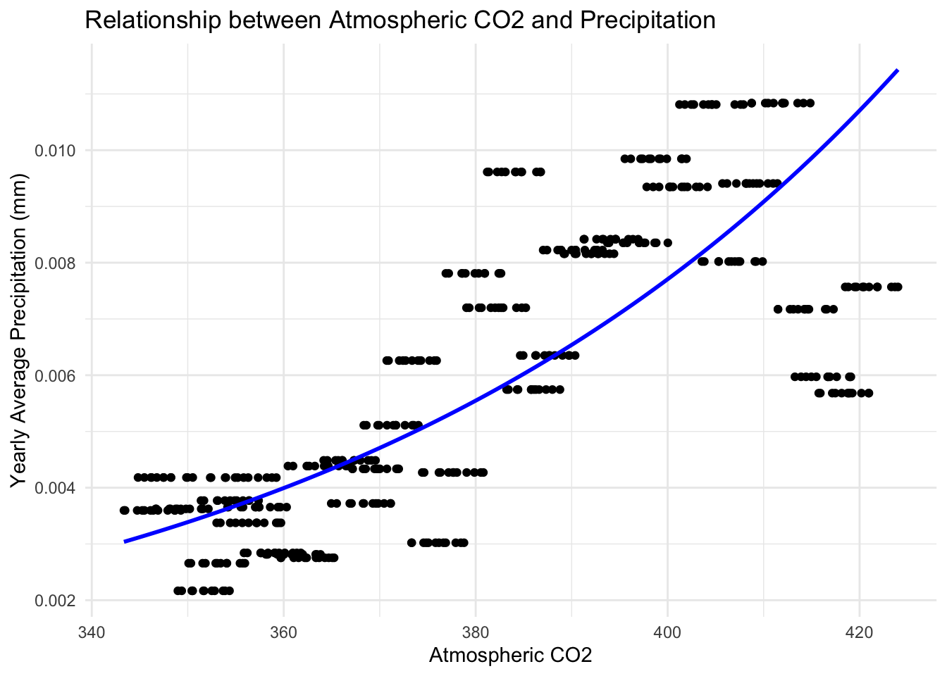 labs(title = "Relationship between Atmospheric CO2 and Precipitation",